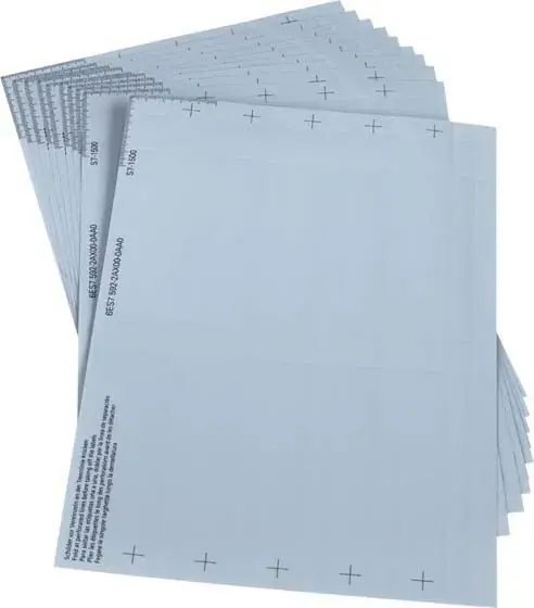 SIMATIC S7-1500, Beschriftungsbögen für 35mm Breite S7-1500 Baugruppen Farbe: AL GREY Material: Folie, perforiert, geeignet zum Bedrucken mit handelsüblichen Laserdruckern, 10 Bögen mit je 10 Streifen je Verpackungseinheit ausreichend für 100 Baugruppen Zubehör für S7-1500 Module